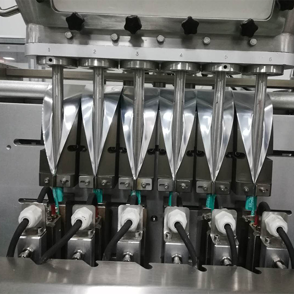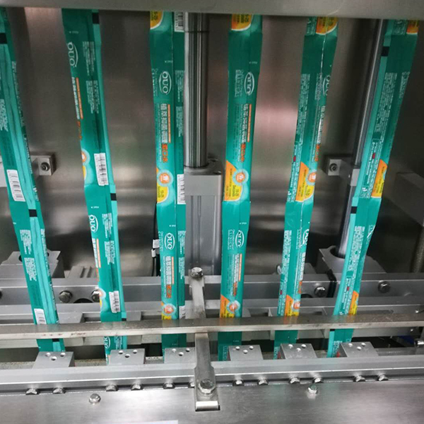 多列粉末包裝機(jī)是專門用來包裝條狀粉末類型物料的,采用螺桿計(jì)量裝置自動(dòng)進(jìn)行物料的計(jì)量,每一列數(shù)對(duì)應(yīng)一個(gè)螺桿計(jì)量裝置,也就是說10列粉末包裝機(jī)就有10個(gè)螺桿計(jì)量機(jī)。另外這臺(tái)多列咖啡粉包裝機(jī)還配置了一個(gè)吸塵器,一般情況下多列機(jī)包裝粉末的時(shí)候,在下料的過程中會(huì)有揚(yáng)塵的現(xiàn)象,不除去揚(yáng)塵,會(huì)導(dǎo)致封口不密封,封口不美觀,這個(gè)吸塵器的作用就是把揚(yáng)塵吸掉,保證密封性,增加封口的美觀度。