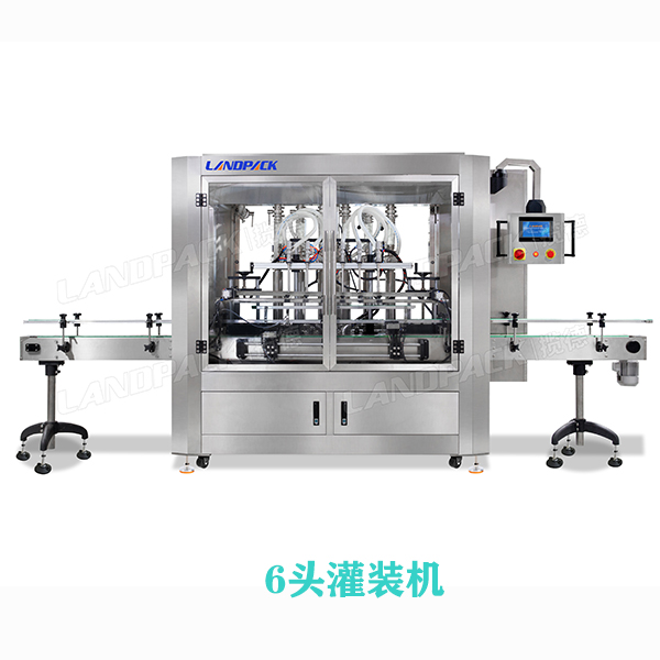 本線采用6頭伺服活塞灌裝機(jī)、四輪旋蓋、收集平臺(tái)等組成全自動(dòng)化生產(chǎn)線;