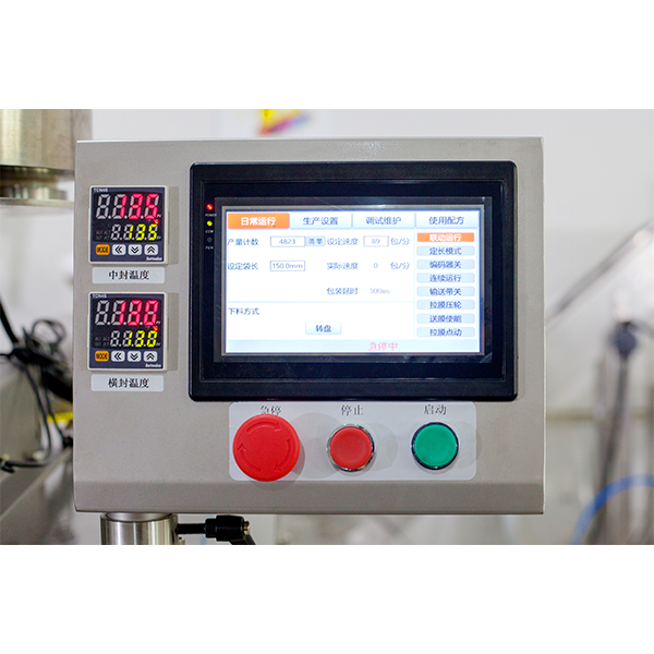 3.設(shè)備采用伺服驅(qū)動(dòng)拉膜、放膜,確保拉膜精準(zhǔn),包裝袋型效果整齊美觀;