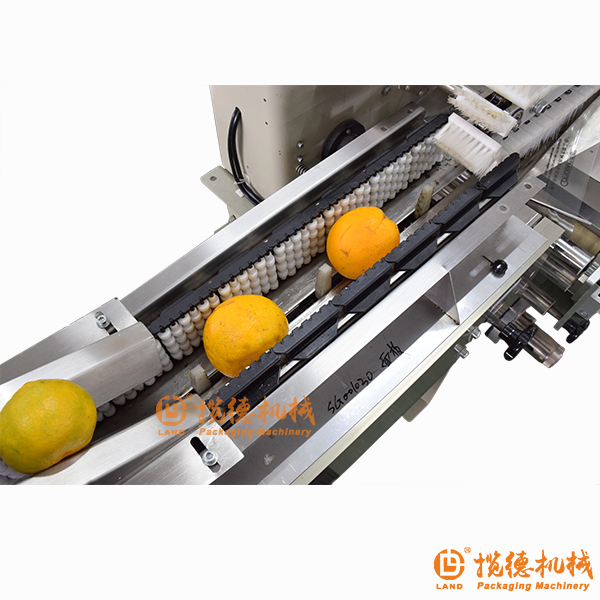 這款機(jī)器分為全自動和半自動,全自動就是配合錐形滾筒上料裝置使用,不需要人工將橙子一個一個放入傳送帶上。半自動的話,就沒有錐形上料裝置,人工把橙子一個一個擺放到傳送帶當(dāng)中,然后在經(jīng)過枕式包裝機(jī)進(jìn)行包裝。